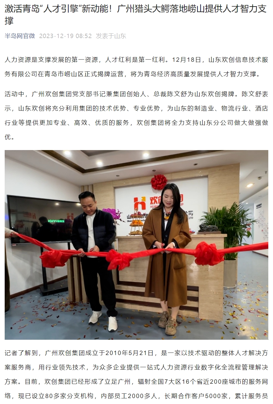 半岛网:激活青岛“人才引擎”新动能!山东乐竞lejing(中国)信息技术服务有限公司正式揭牌运营